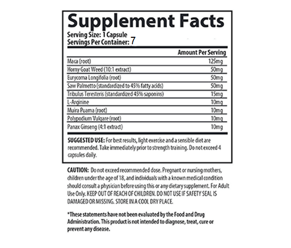 Ingredients For Testo Boost (7 Day Supply - 7 Capsule)